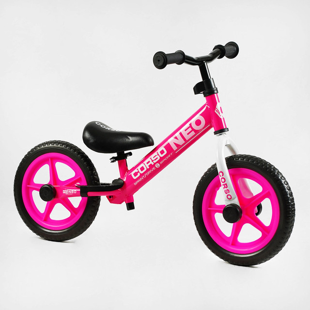 Дитячий біговел велобіг на сталевій рамі 12 дюймів CORSO NEO EN-37748 EVA колеса Рожевий