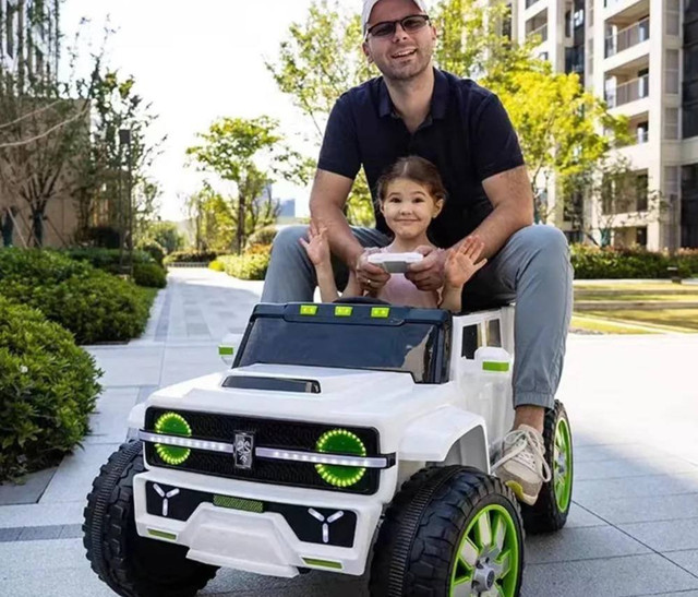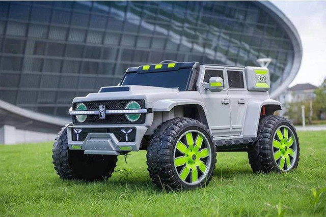 Дитячий електромобіль Wrangler, шкіряне сидіння — має просте ручне керування, яке здійснюється за допомогою керма та педалі газу, але якщо вашому малюкові поки що рано сідає за кермо, то ви зможете катати його, використовуючи пульт керування, ця модель поєднує в собі високу якість, реалістичний дизайн, комфорт і функціональність. Дитячий електромобіль створений у стилі справжнього позашляховика Wrangler, джип має високу посадку, а також великі EVA колеса, які допомагають зробити їзду м'якою та комфортною, ця модель обладнана потужними моторами, корпус виготовлений із високоміцного пластику, що гарантує джипу надійність і довговічність.