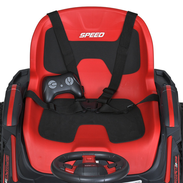 Дитячий електромобіль M 6029 EBLR — обладнаний м'яким шкіряним сидінням зі спинкою, яке забезпечує комфорт навіть під час тривалих поїздок. Додатково передбачений ремінь безпеки, що гарантує надійну фіксацію дитини в процесі катання.