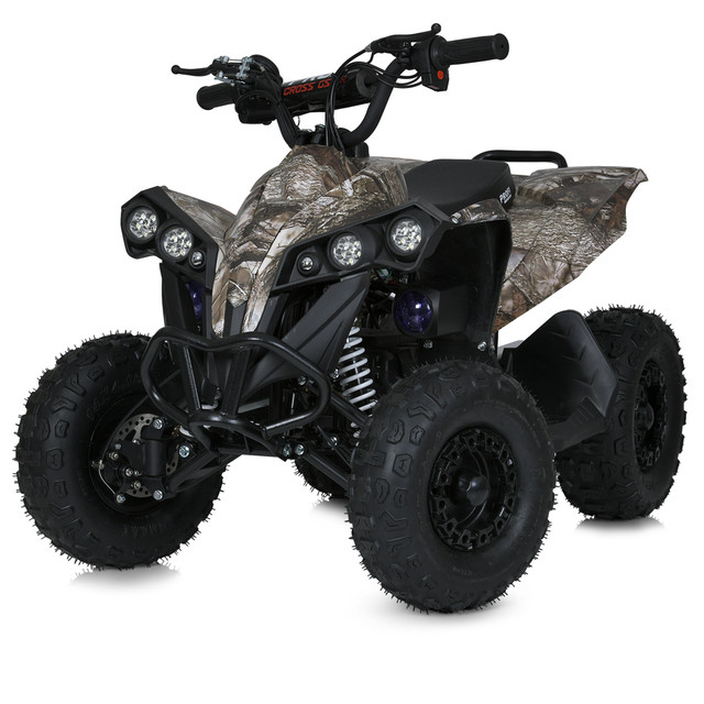 Міцна металева рама квадроцикла гарантує надійність конструкції навіть за інтенсивної експлуатації, а надувні гумові колеса з протекторами та три амортизатори (два передніх і один із задній з регулюванням жорсткості) створюють комфортні умови для їзди.